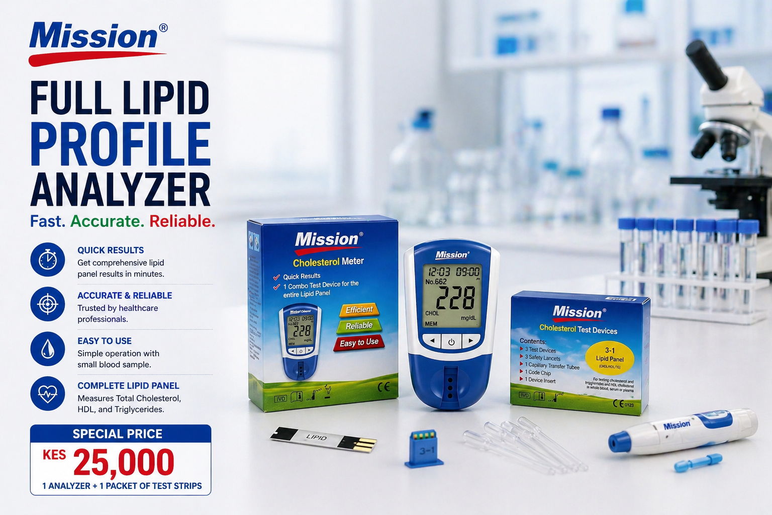 The Mission® Cholesterol Analyzer is designed to deliver fast, accurate, and reliable results—right at the point of care.